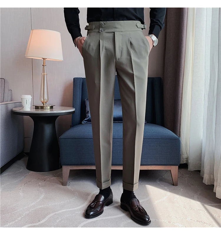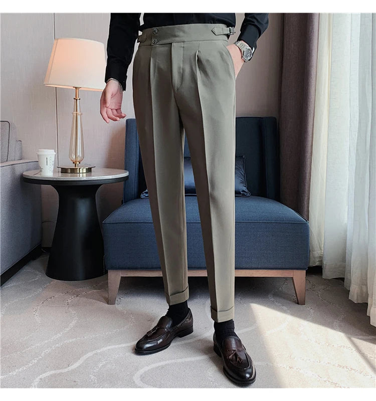 2024 High Quality Business Casual Draped High-waist Trousers Men Solid Color Formal Pants Male Formal Office Social Suit Pants