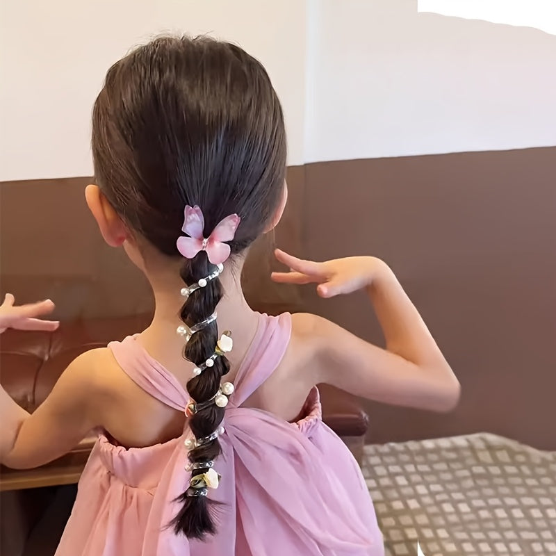 Delight your little one with this adorable 2-piece butterfly headband set by AYLHFO. Featuring charming mesh butterflies, round pearls, and floral accents, these playful headbands add a touch of whimsy to any outfit for daily wear or special occasions.