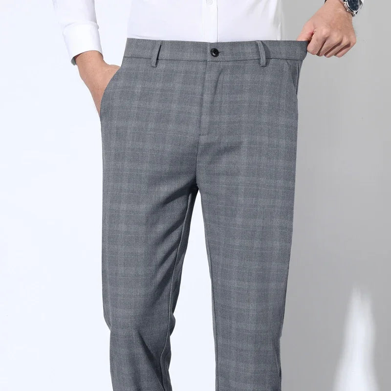 Autumn Winter Men's Plaid Striped Suit Pants Cotton Stretch Straight Business Casual High Quality Classic Fashion Trousers Male