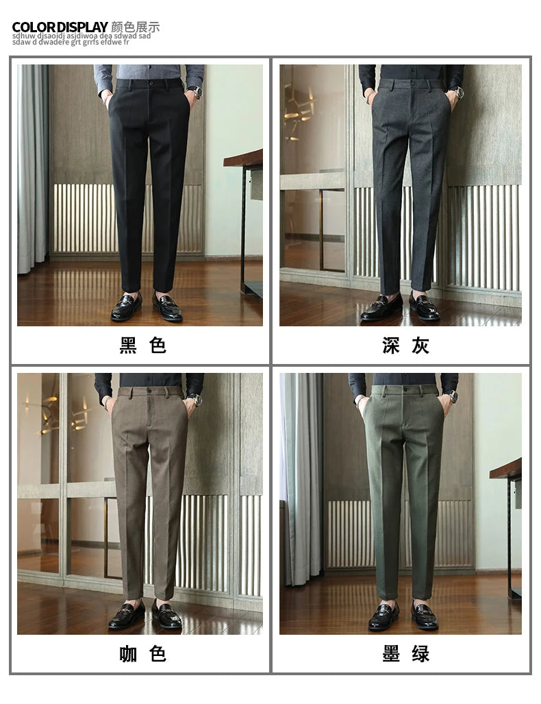 Autumn Winter New Woolen Suit Pants High Quality Striped Slim Fit Dress Pants Men's Formal Business Office Social Trousers