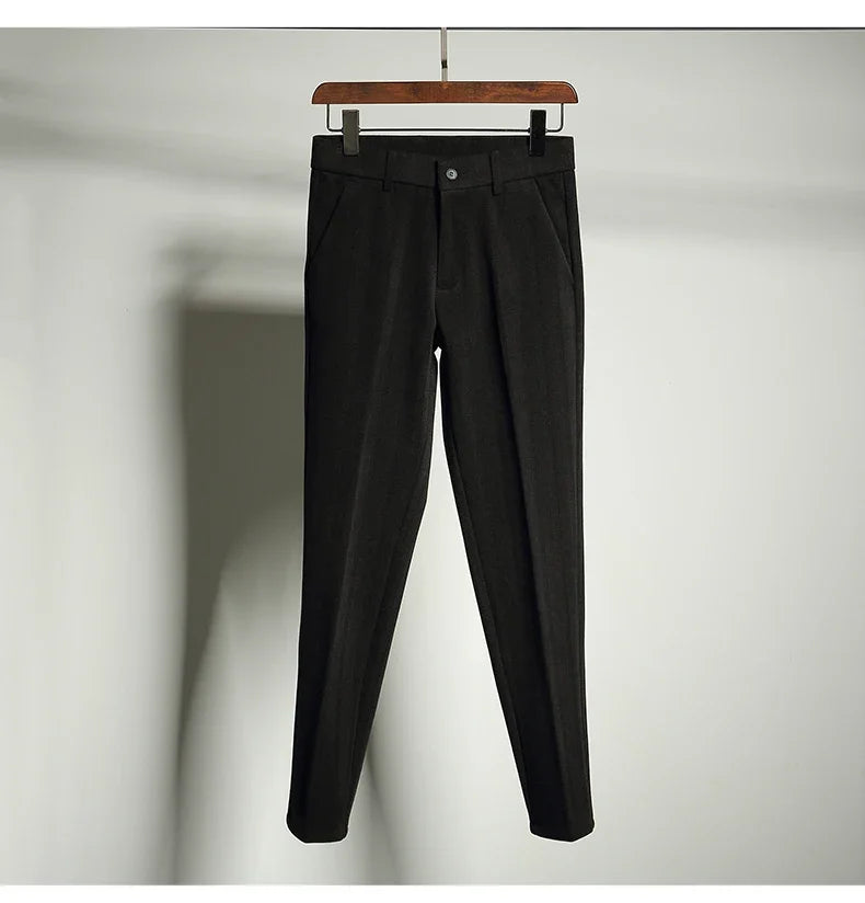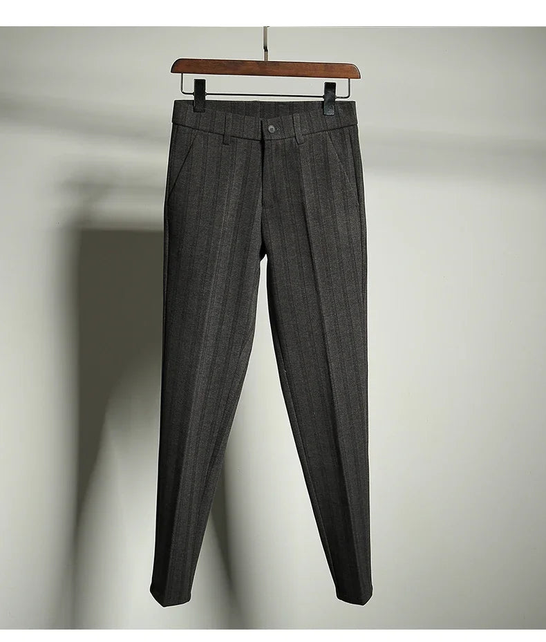 Autumn Winter Thickened Woolen Suit Pant High Quality Men Business Slim Striped Trousers Formal Wear Office Social Dress Pants