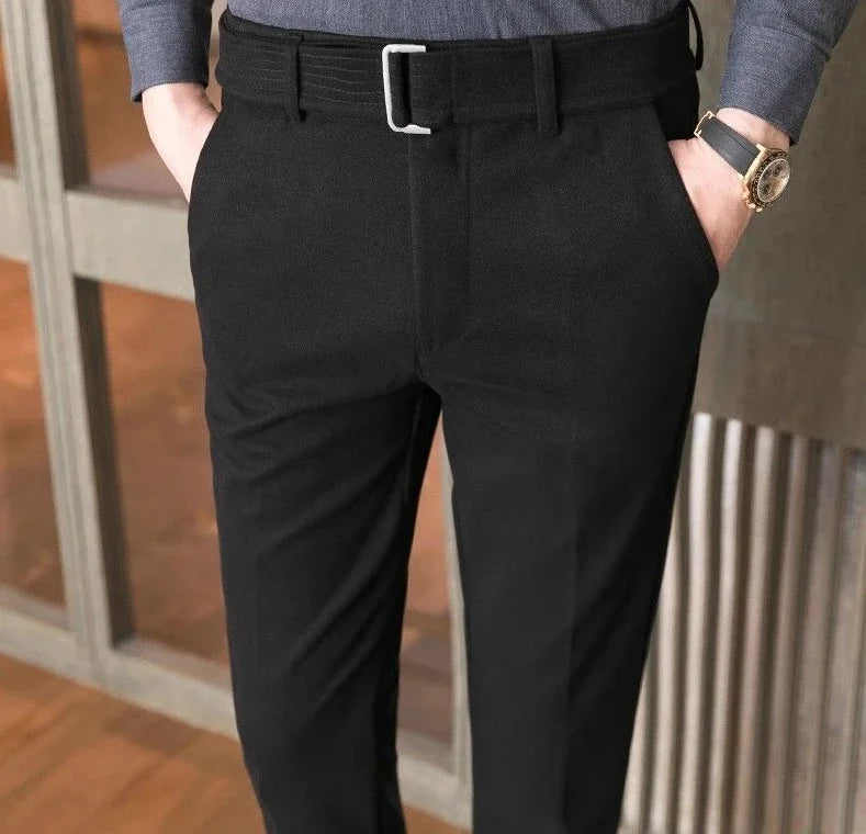 Straight Slim Fit Tressed Male Suit Trousers Social Tailoring Men's Summer Pants Stretch Business Elastic Clothing Promotion Hot