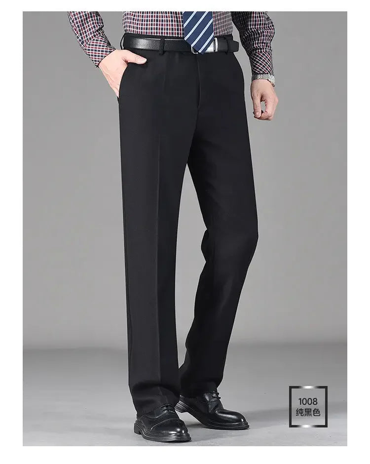 Vintage Autumn Winter Thicken Wool Fleece Suit Pants Men Middle Age High Waist Straight Loose Business Casual Straight Trousers